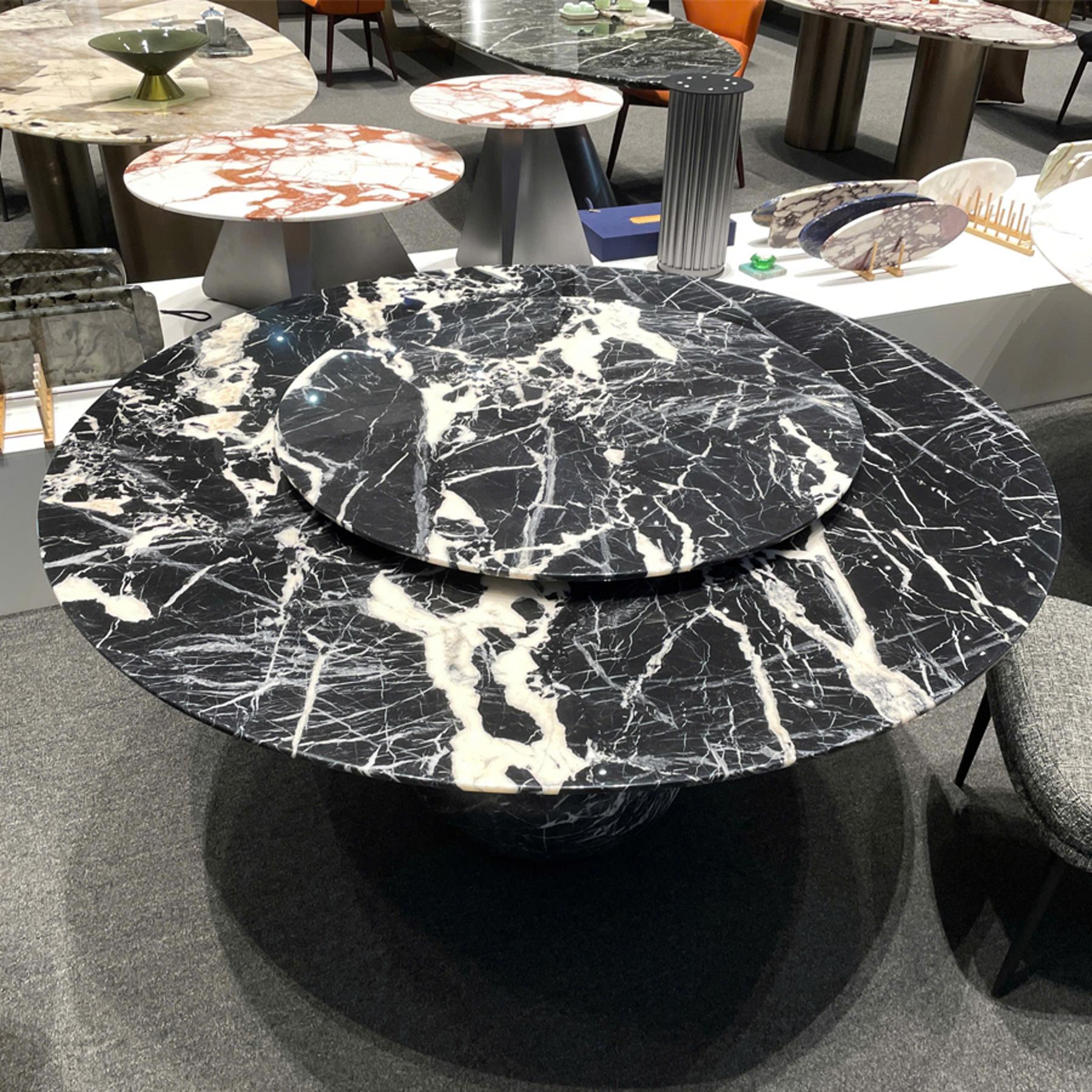 Thiết kế sang trọng, hiện đại giúp nâng tầm không gian sống. Chất liệu đá marble nguyên khối mang lại độ bền cao và giá trị sử dụng lâu dài. Mâm xoay tiện lợi giúp tối ưu trải nghiệm sử dụng trong sinh hoạt hàng ngày.