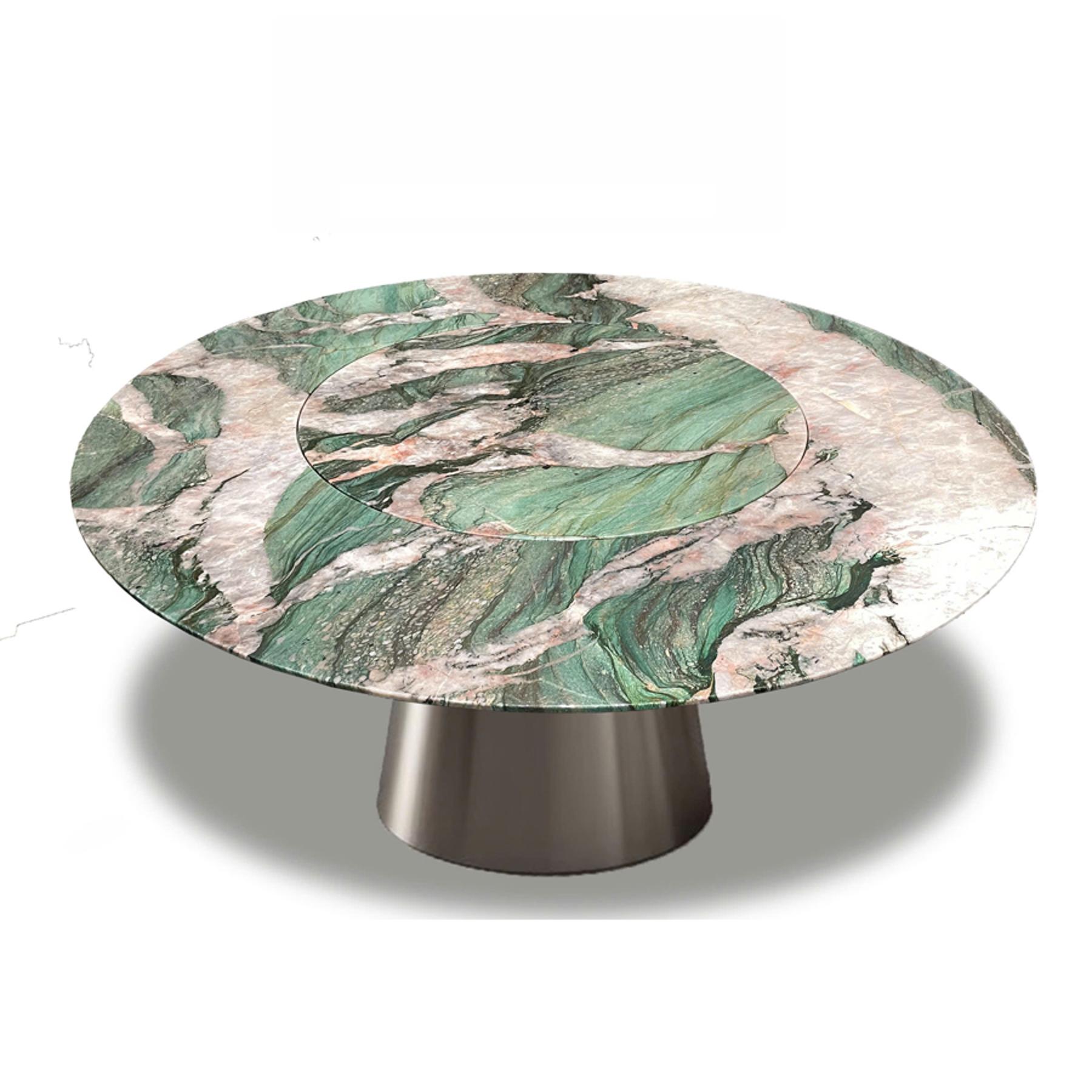 Bàn Trà HTBT006 sử dụng đá marble tự nhiên với gam màu xanh ấn tượng, kết hợp cùng các đường vân trắng và be uốn lượn như dòng chảy nghệ thuật. Mỗi sản phẩm là một phiên bản duy nhất, không trùng lặp, tạo nên giá trị độc bản.
