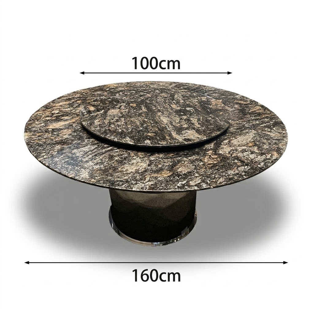 Bàn được thiết kế dạng tròn giúp tạo sự mềm mại, cân đối và hài hòa cho không gian nội thất. Điểm nổi bật là phần mâm xoay tiện dụng, hỗ trợ người dùng dễ dàng thao tác khi sử dụng trong sinh hoạt hàng ngày.