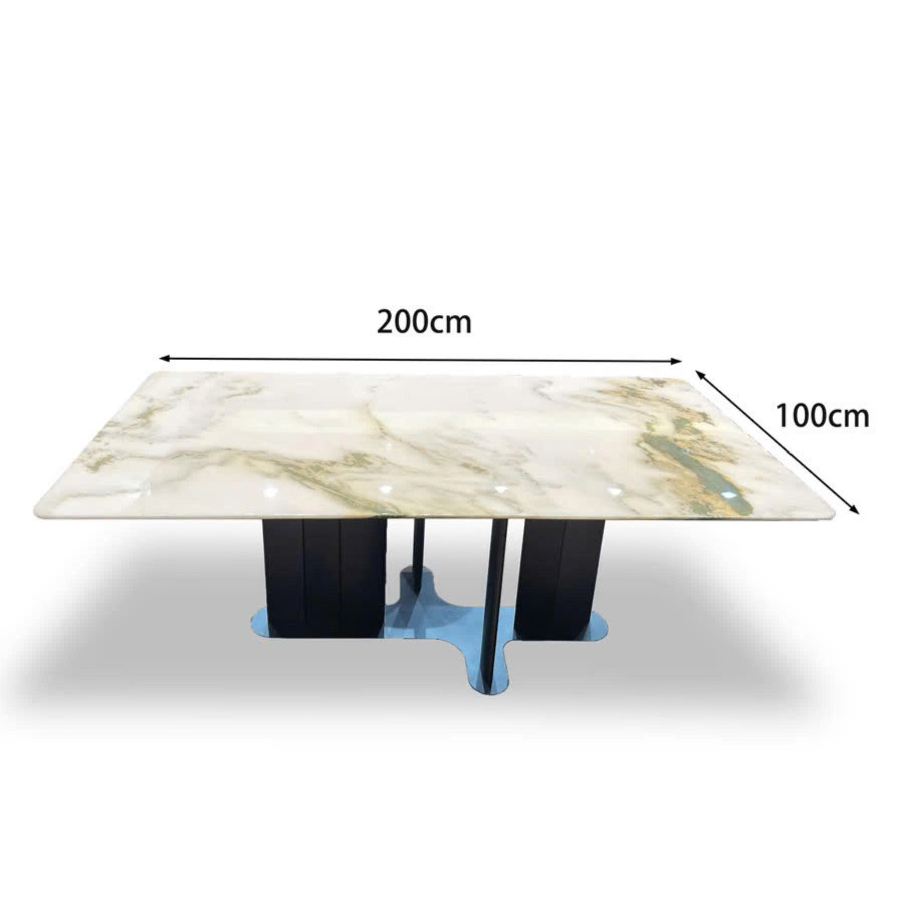 – Chân bàn nghệ thuật: Kết hợp giữa trụ lớn và thanh kim loại thanh mảnh, tạo điểm nhấn hiện đại.