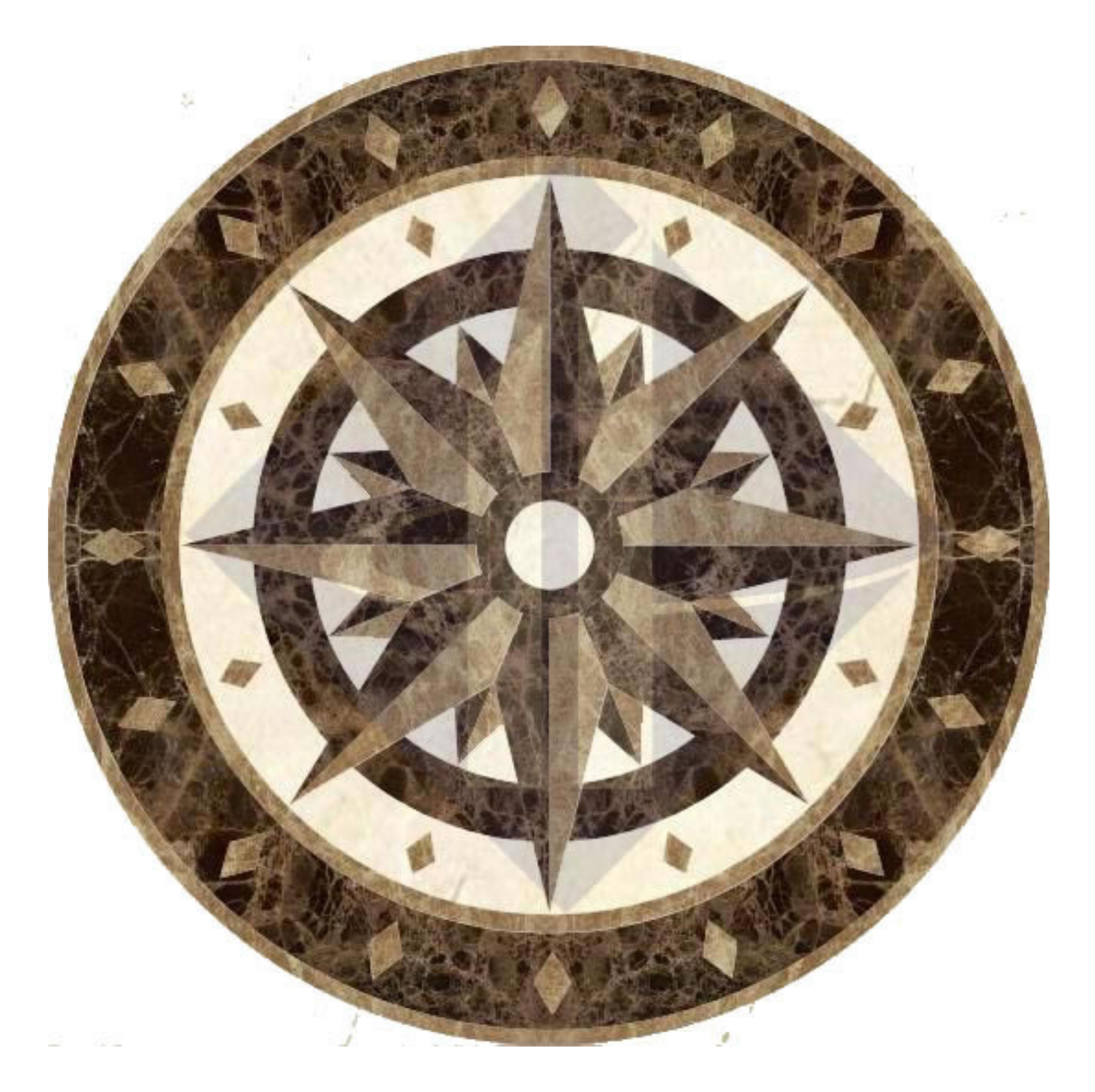 Light Emperador hoặc Marble Vàng: Sử dụng cho các chi tiết cánh sao phụ và hình thoi, tạo điểm nhấn chuyển tiếp màu sắc hài hòa.