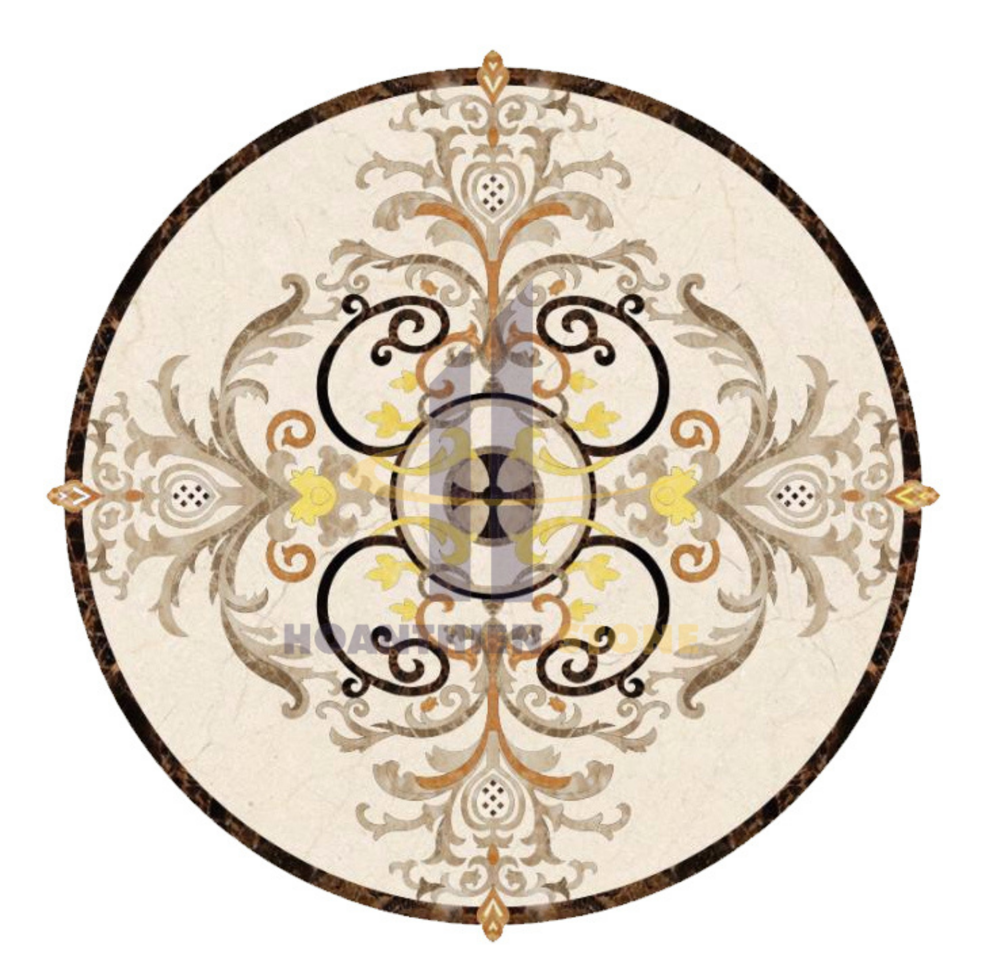 Mẫu hoa văn tròn HT-HVT080 từ thương hiệu HoanThien Stone là sự lựa chọn hoàn hảo cho những gia chủ yêu thích vẻ đẹp nghệ thuật tinh tế và sang trọng. Được thiết kế dựa trên cảm hứng từ các họa tiết trang trí trong các cung điện Phục hưng, sản phẩm chú trọng vào sự cân bằng tuyệt đối và sự phối hợp màu sắc tự nhiên hài hòa. Đây là một trong những thiết kế tiêu biểu tại Kho đá Hoàn Thiện, dành riêng cho các công trình biệt thự, lâu đài và khách sạn cao cấp.