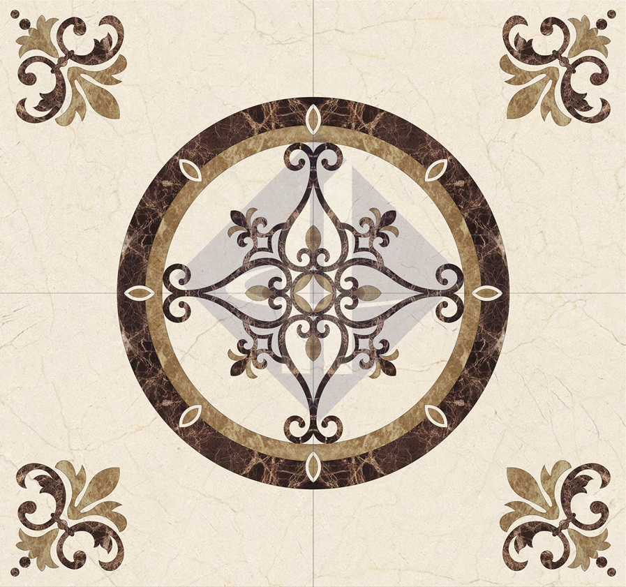Hoa văn vuông HT-HVV039 chinh phục thị giác bằng một thiết kế đề cao sự tinh tế, không nhồi nhét quá nhiều chi tiết mà vẫn toát lên vẻ quyền quý. Tác phẩm sử dụng ngôn ngữ thiết kế mâm tròn đồng tâm truyền thống, nhưng được tạo nhiều khoảng “thở” nhờ mảng nền đá sáng trải rộng xung quanh.
