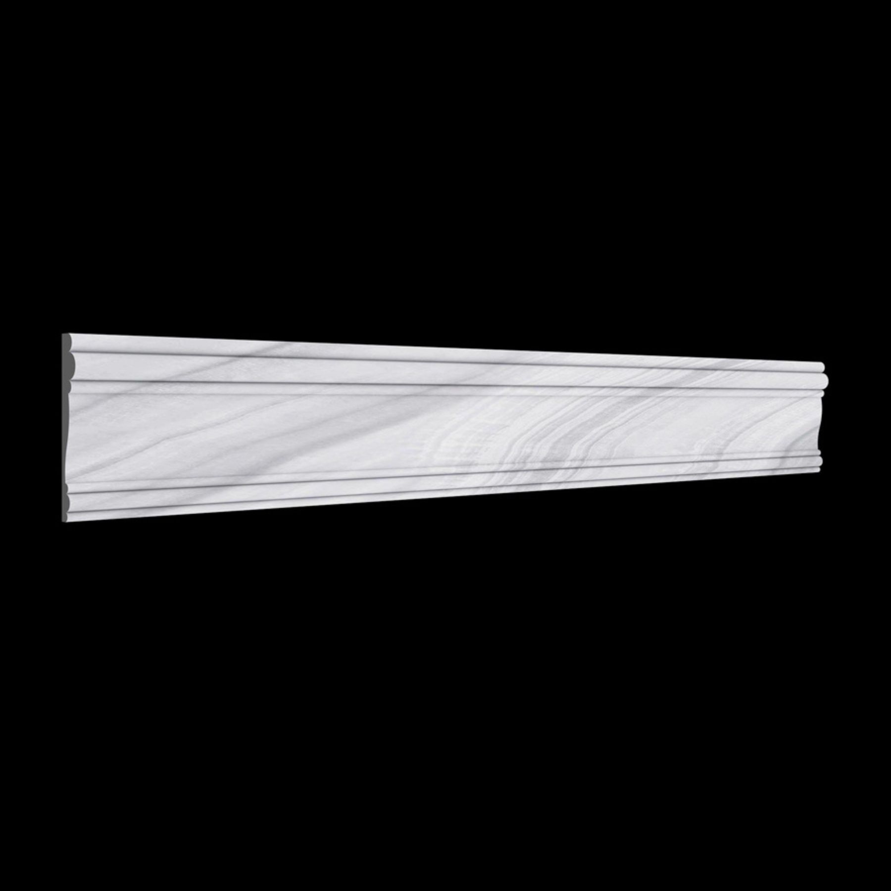 Phào thẳng HT-PT014 sử dụng đá tự nhiên với tông trắng xám sáng, nổi bật bởi các đường vân mây uốn lượn mềm mại: