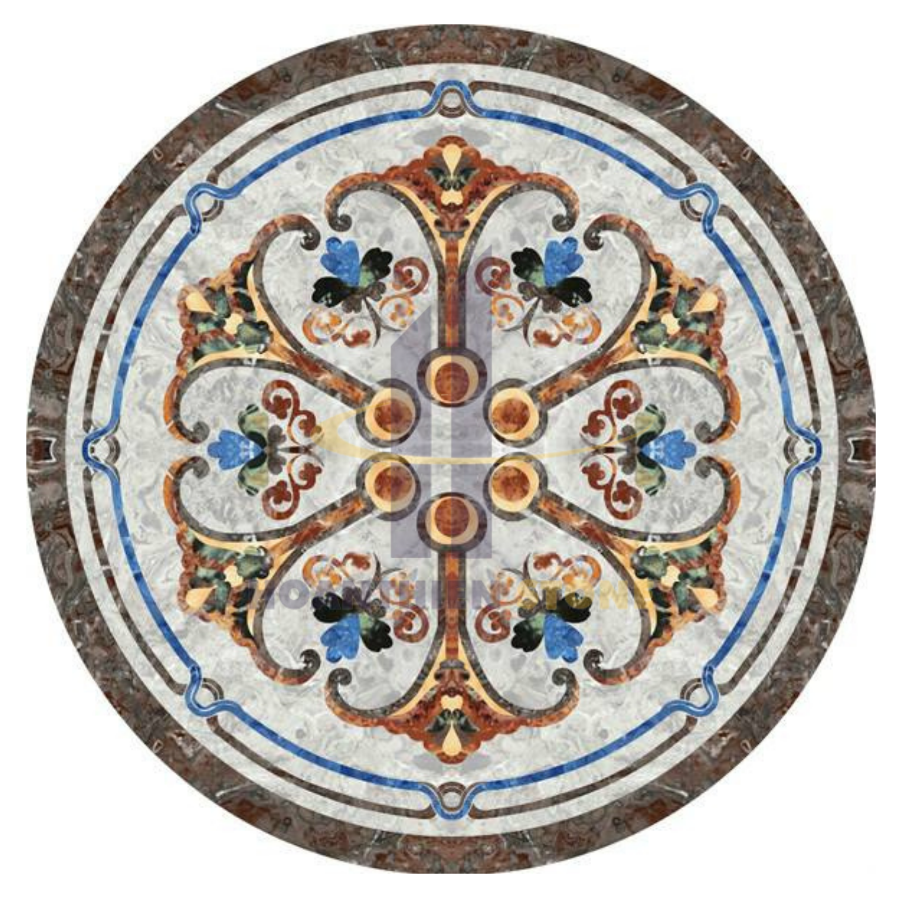 Mẫu hoa văn tròn HT-HVT071 từ thương hiệu HoanThien Stone là biểu tượng của sự sang trọng và kỹ nghệ chế tác đá đỉnh cao. Lấy cảm hứng từ những cung điện châu Âu thời kỳ phục hưng, thiết kế đề cao tính chi tiết và sự phối hợp màu sắc phức tạp để tạo nên một “tấm thảm đá” sống động. Đây là lựa chọn hoàn hảo cho những không gian đòi hỏi sự cầu kỳ và đẳng cấp như đại sảnh biệt thự, lâu đài hoặc các khu vực phòng khách chính.